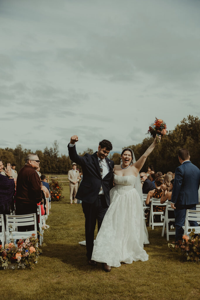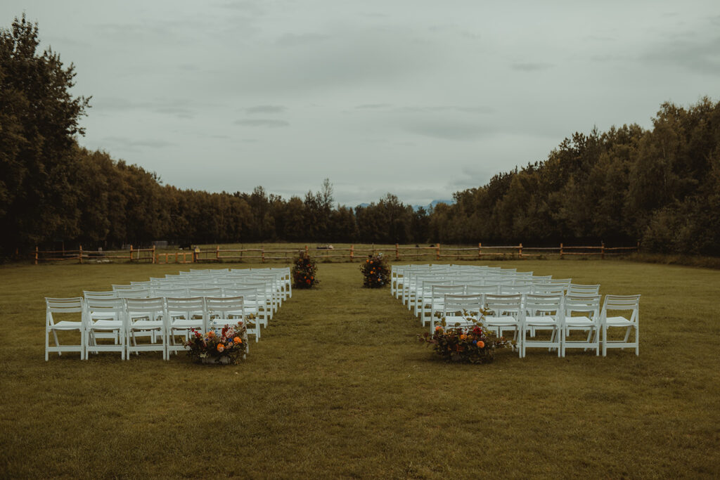 They booked a planner, Lorell of I Do Events, known for their highly detailed and perfectly executed events. After plugging in the couple’s vision, a well crafted list of Alaska’s best wedding and party vendors made the dream an exceptionally professional and well-polished reality. Notably: Wunder Bar for the drinks, Bloomsbury Blooms for the florals, and Alaska Professional Entertainment for the DJ, among many others. A truly top-notch list of incredible vendors to make this event memorable and smooth. This helped make the day as perfect and magical as any big wedding can be, with all the fixings and no stress.
